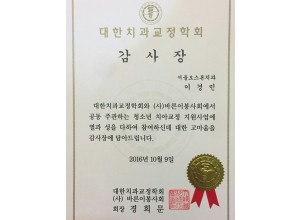 대한치과교정학회 감사장 받았습니다!